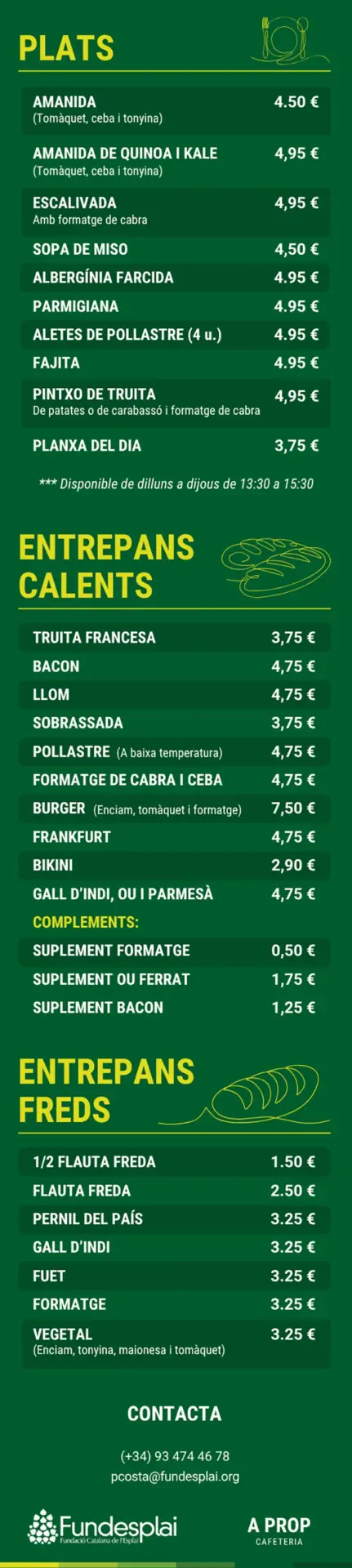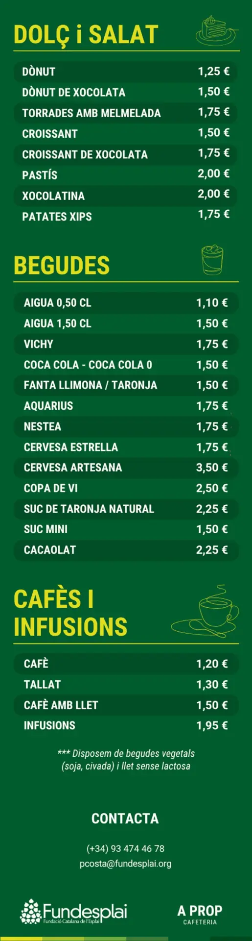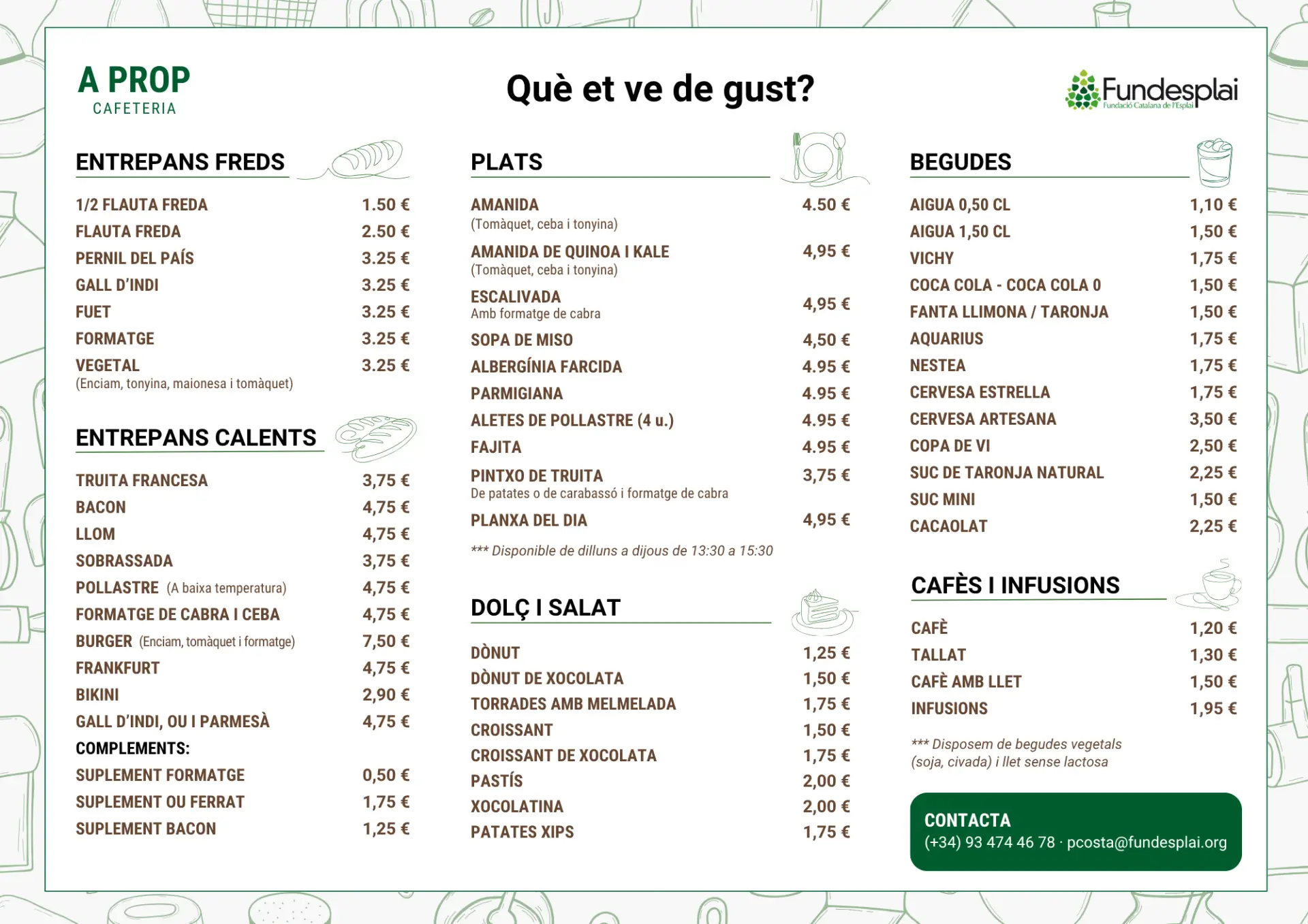 La cafeteria A prop és un espai que et convida a quedar-t’hi. Situada al costat de l’espai polivalent de Centre Esplai, ofereix una cuidada selecció d’entrepans, plats elaborats, dolços, aperitius, begudes, cafès i infusions.